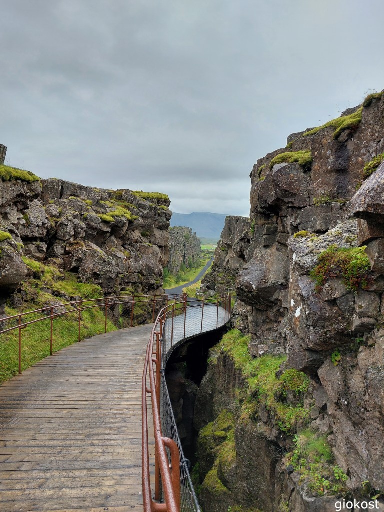 L’incredibile geologia del parco deriva dal fatto che è situato proprio in mezzo alle placche tettoniche euroasiatica e nordamericana, nella fossa tettonica che attraversa tutta l’Islanda, la dorsale medio atlantica. Questo è l’unico posto dove è visibile al di sopra del mare. Appena arrivati si scende lungo un sentiero asfaltato che vi permette di calpestare la faglia Almannagjá all’ interno della quale scorre anche il fiume che origina la cascata di Oxarafoss, altro spettacolo da non perdere. Percorrendo i molti sentieri si può attraversare la faglia e arrivare alla chiesa, costruita nel 1850, o dirigersi verso l’alto da dove si ha una visione anche della faglia di Sifra, nella quale, per chi vuole, si possono fare immersioni o snorkeling.
