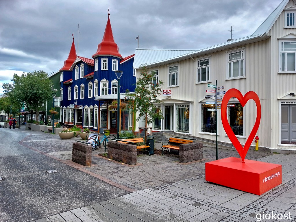 Si può pensare che il clima di questa cittadina sia per lo più freddo essendo molto vicina al circolo polare artico ma in realtà non è così, infatti spesso è soleggiata, ed è anche la residenza di un bel giardino botanico da visitare, così come la chiesa edificata dalla stesso architetto della cattedrale di Reykjavik o la piscina termale dove si può rilassarsi immergendosi negli hot tubes a differenti temperature. L’ attività principale è la pesca, dal punto di vista turistico può considerarsi la base per fare delle escursioni a luoghi vicini come la regione di Myvatn, le cascate di Godafoss ma anche avventurarsi alla ricerca di avvistare le balene. Al di là di tutto è una città animata con molti caffè, ristoranti, murales e case colorate e con una simpatica stranezza, il rosso dei semafori è a forma di cuore.