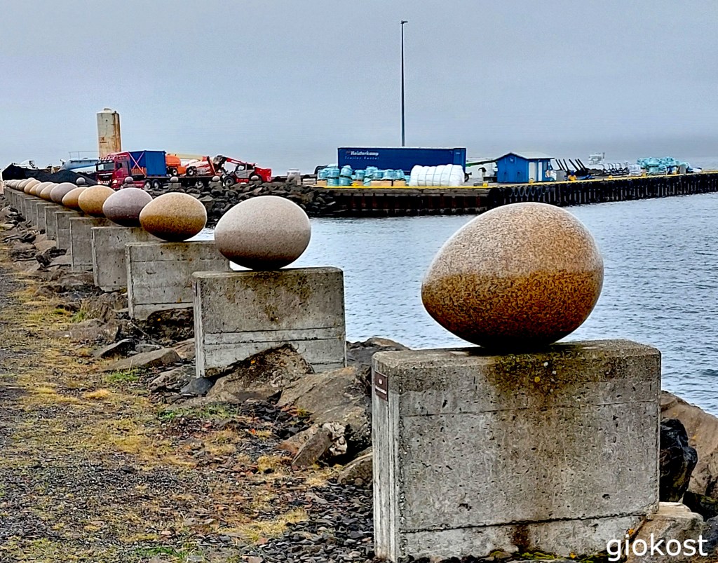 Una particolarità sono le uova a Gledivik dell’artista Sigurdur Gudmundsson. Sono 34 uova, ognuna delle quali rappresenta un uccello del posto. La scelta del posto dove esporle diciamo, con un eufemismo, non mi sembra proprio molto appropriata.