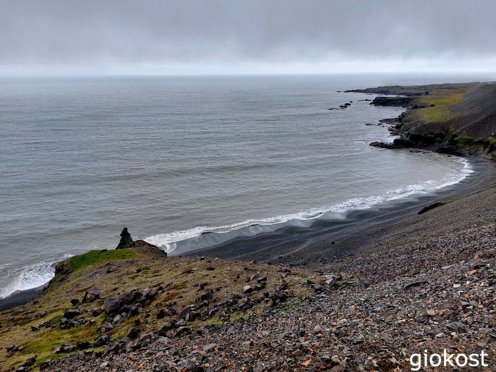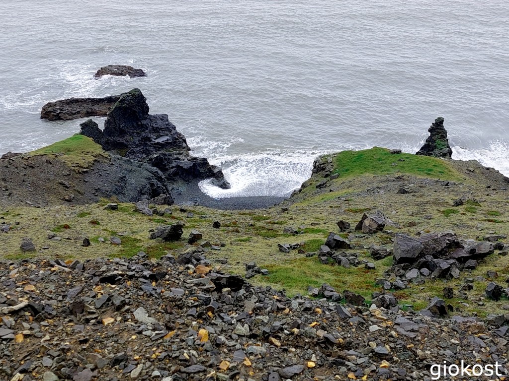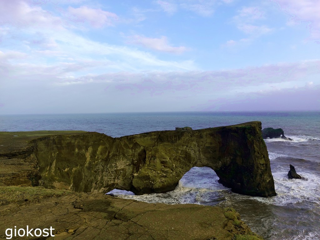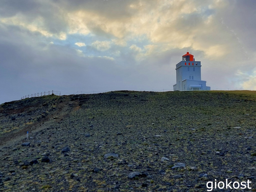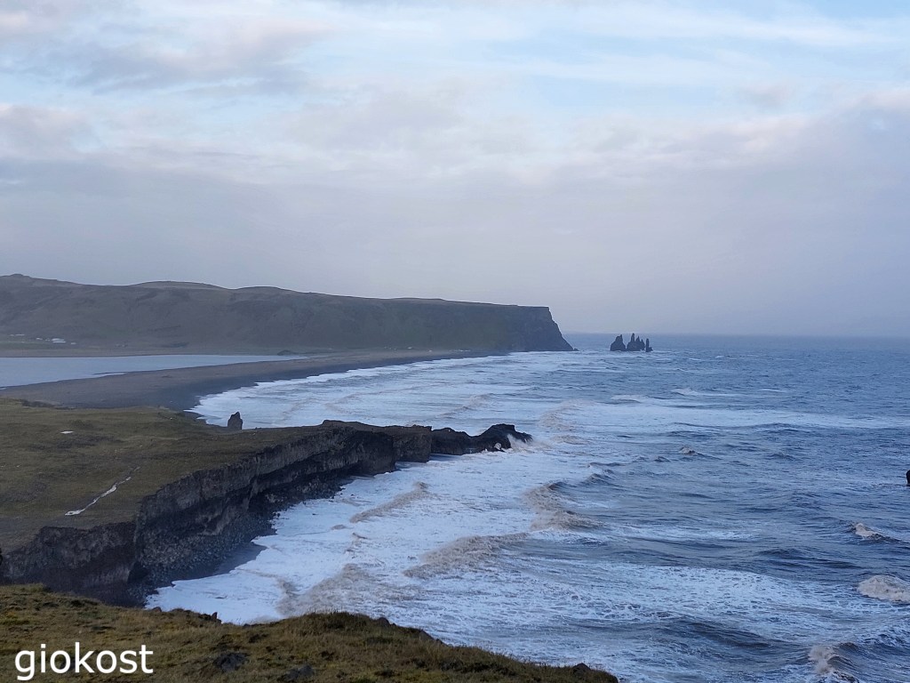 Poco prima della deviazione per la spiaggia ce n’è un’ altra sempre dalla route numero 1 sulla 218, è una strada tenuta bene anche se non asfaltata che termina nel parcheggio sul promontorio di Dyrhòlaey dopo una salita importante e alcuni tornanti, si consiglia di guidare con prudenza perché non ci sono parapetti. Dopo aver parcheggiato la macchina si può scegliere fra due sentieri, quello a sinistra si dirige verso il faro e da lì, scendendo lungo una pietraia, si può godere della vista sulla spiaggia di Reynisfjara e dei suoi faraglioni e dell’ arco di Tóin ; sulla destra invece, la vista è su una lunghissima spiaggia nera contornata da colline di un verde intenso, che si estende per molti chilometri verso ovest.