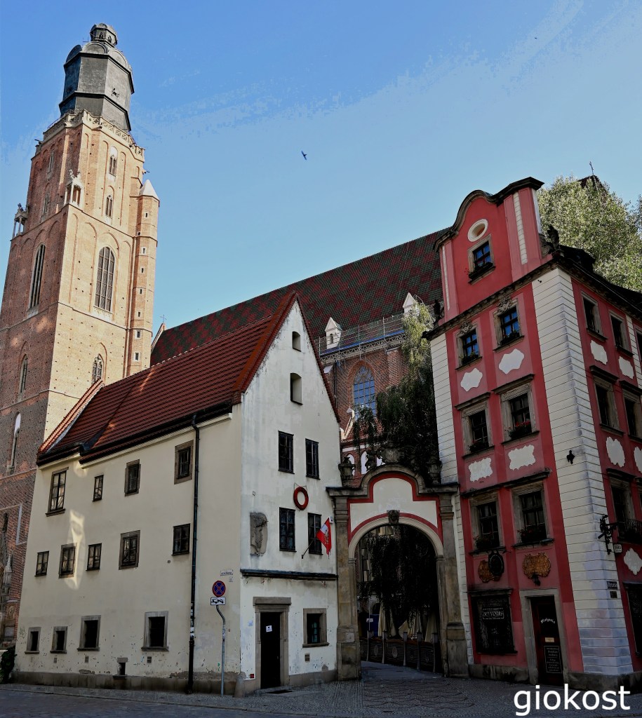 La gogna è ormai solo una colonna di pietra, copia dell’originale in legno, era in funzione nei secoli scorsi ma, purtroppo, anche durante l’occupazione nazifascista, sulla sua sommità è stata posta una statua con in mano una frusta. La fontana, soprannominata Zdrój è fatta con grandi lastre di vetro e si raccontano alcune storie divertenti come di alcuni turisti che vi fecero il bagno completamente nudi oppure di quando fu riempita di sapone e si formò un’enorme massa schiumosa. Doveva essere rimossa dopo alcuni anni dalla sua costruzione ma non se ne fece nulla. Infine su un angolo della piazza poco prima della chiesa, di architettura gotica, di Santa Elisabetta, riconoscibile per il alto campanile, ci sono due strutture chiamate “Hansel e Gretel”, una più grande e una più piccolina che sembrano darsi la mano, sono unite tra loro da un arco che porta alla chiesa e una volta al cimitero per questo motivo l’iscrizione dice: “La morte è la porta della vita“.
