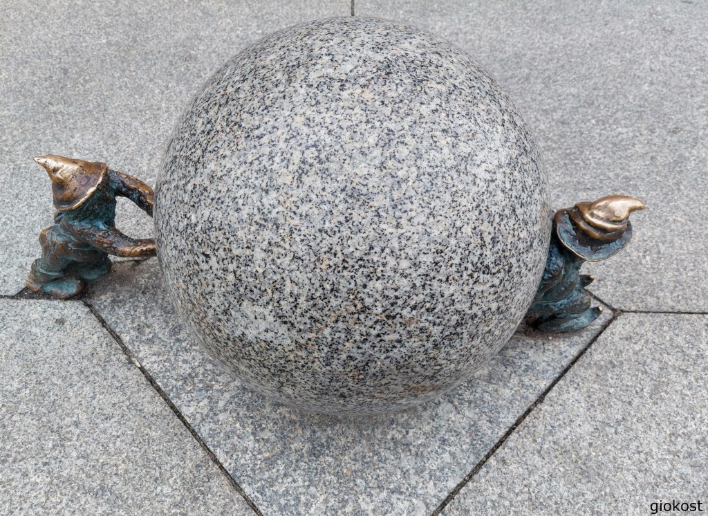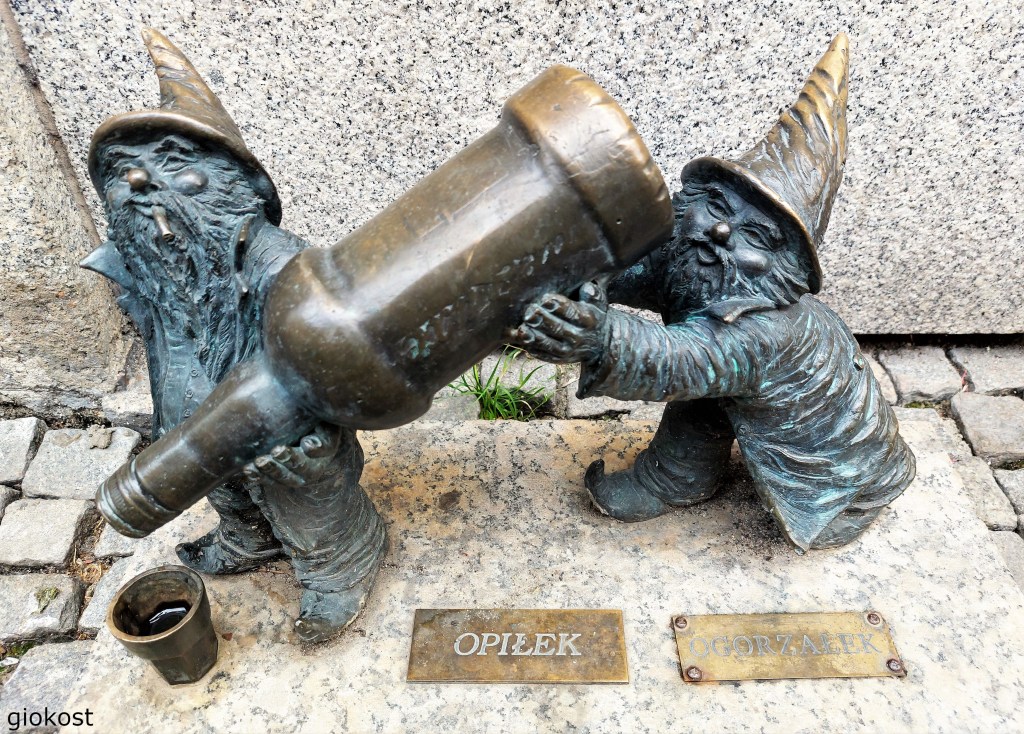 E’ vero, ce ne sono dappertutto, soprattutto nelle zone turistiche, è anche vero che per chi vuole cercarli vendono una mappa, non so quanto aggiornata, dei luoghi in cui trovarli. Wroclaw, o Breslavia, come viene tutt’ora chiamata in lingua tedesca, è una città situata nel sud-ovest della Polonia di circa seicentomila abitanti, attraversata dal fiume Odra, meglio conosciuto come Oder e dai suoi affluenti e canali che formano delle isole. Tuttavia Wroclaw viene spesso ricordata per gli gnomi che in passato hanno avuto una funzione politica, infatti negli anni ottanta iniziarono a comparire come graffiti per ridicolizzare il potere governativo, oggi si trovano ovunque “impegnati” a svolgere i mestieri più differenti, qualcuno anche per fare della pubblicità, si dice ce ne siano più di trecento, io non li ho contati. Per chi fosse curioso o interessato di seguito alcune fotografie.