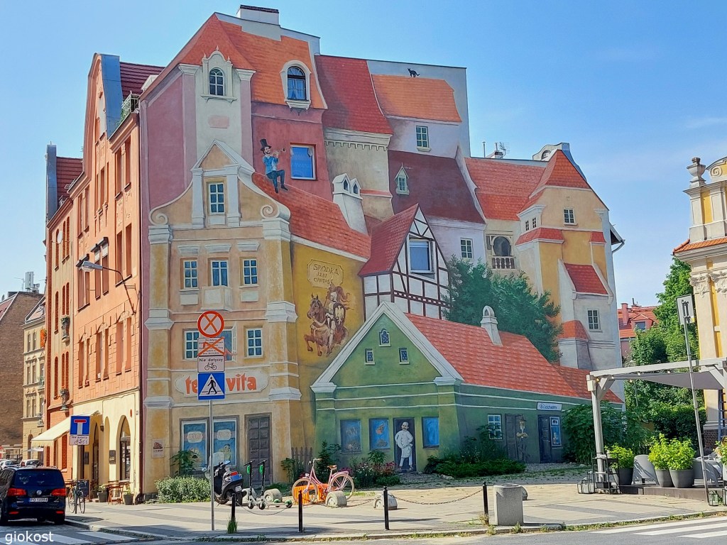 Ricostruita, del tutto rigorosamente, quasi completamente dopo i bombardamenti subiti nella seconda guerra mondiale, si presenta con ai lati le quattro fontane, di Proserpina, Marte, Apollonia e Nettuno, al centro, davanti al municipio, una colonna usata molto tempo fa come gogna pubblica. Sulla piazza ci sono anche due importanti musei, quello degli Strumenti Musicali, e il Museo Archeologico. Camminando pochi minuti si arriva alla Basilica di Nostra Signora del Perpetuo Soccorso, Maria Maddalena e San Stanislao, o più semplicemente Chiesa di Frara, bella chiesa barocca al cui interno decorato con stucchi , statue e pitture di fregio, si trova un magnifico organo. Accanto al Ratusz, sul lato orientale, ci sono le case dei costruttori risalenti al XVI secolo, riconvertite dapprima in case popolari e ricostruite fedelmente dopo la seconda guerra mondiale, riconoscibili dai loro colori sgargianti come porticato a lato del municipio.