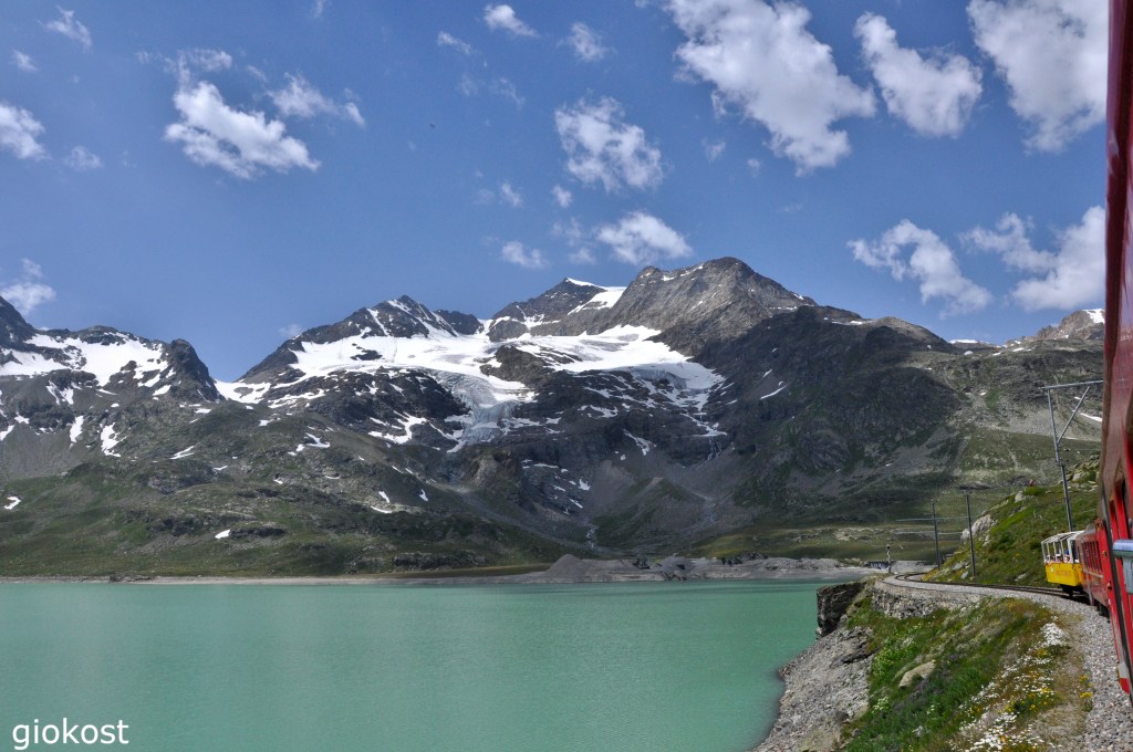 Una domenica di luglio del 2015 ho deciso di attraversare le Alpi, in treno, partendo da Sankt Moritz in Svizzera per arrivare a Tirano in provincia di Sondrio, dall’Engadina alla Valtellina. È una traversata del tutto particolare e spettacolare, lunga 145 chilometri, con partenza da Coira, 60 chilometri da St. Moritz, con 55 gallerie e 196 tra ponti e viadotti, supera pendenze molto elevate senza l’uso della cremagliera e attraversa aree linguistiche e culturali diverse, un vero e proprio gioiello di alta ingegneria. Lungo il tragitto si può scendere dal trenino rosso ad ogni fermata intermedia per poi risalire e proseguire il viaggio. St. Moritz, rinomata stazione turistica è stata sede dei giochi olimpici invernali nel 1928 e nel 1948, è suddivisa in due, una parte alta, Dorf, raggiungibile con scale mobili, dove visitare il Museo Segantini, la Torre Pendente, la statua del corridore, la Chiesa di San Maurizio e la futuristica Chesa Futura oltre ai Grand Hotel, intrisi di storia, dall’architettura Art Nouveau. La parte bassa, verso il lago, d’inverno ospita la White Turf, corsa di cavalli sulla neve, nota in tutto il mondo per la sua atmosfera chic.