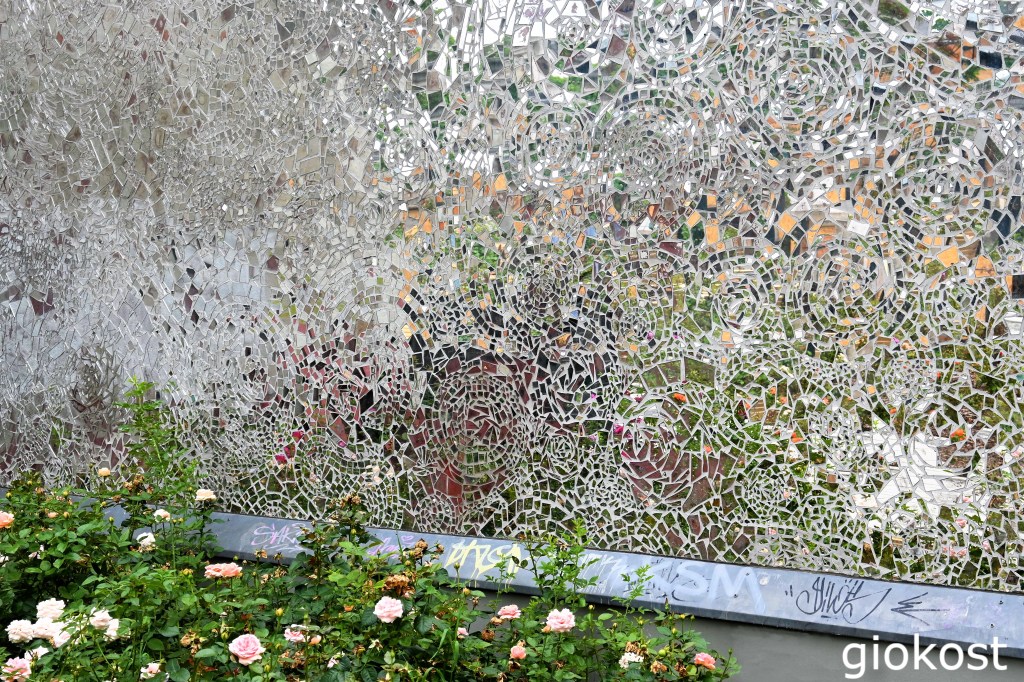 Su un’area di ottocento metri quadrati, l’autrice simula la disposizione delle cellule nervose nella retina della figlia Rosa affetta da retinoblastoma in via di miglioramento, ed è indicativo come appunto il passaggio dal non vedere al vedere. Entrare in questo palazzo è come essere sempre davanti ad uno specchio che frammenta la visuale e la rende poco riconoscibile, oltretutto con il sole si riempie di riflessi di ogni colore. Specchiandosi, secondo la postura corporea che si assume e lo sfondo che ci si ritrova davanti si possono fare fotografie molto “artistiche” e coinvolgenti.