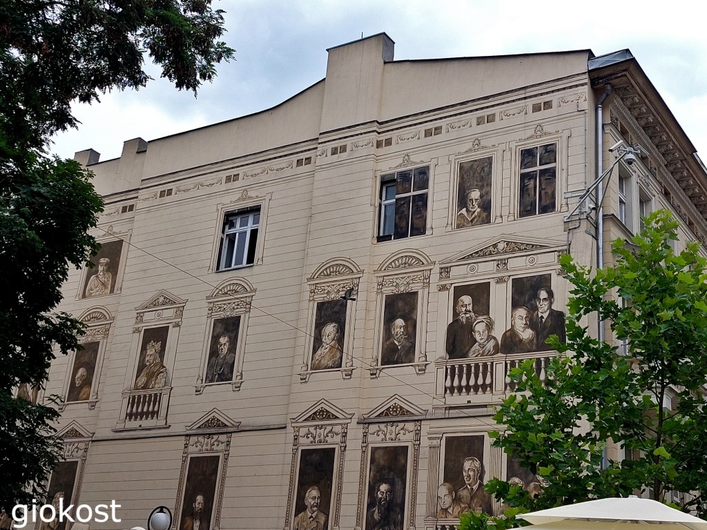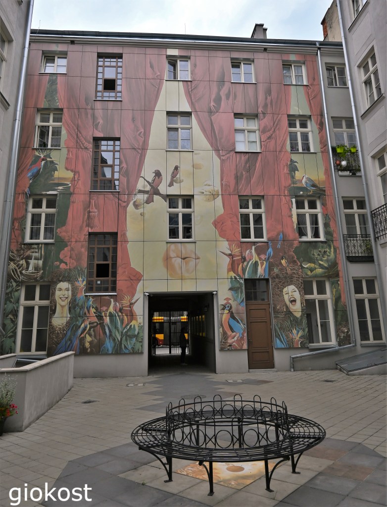 Entra e ti troverai in un cortile arredato con un’opera di Wojciech Suidmak, il cui motto è: “solo un sogno può superare ogni barriera”, rappresenta la corrente del realismo fantastico, con le sue opere, questa è intitolata la nascita del giorno. Sembra di entrare in un mondo incantato, le pareti delle abitazioni sono interamente dipinte con colori sgargianti e con personaggi delle fiabe.