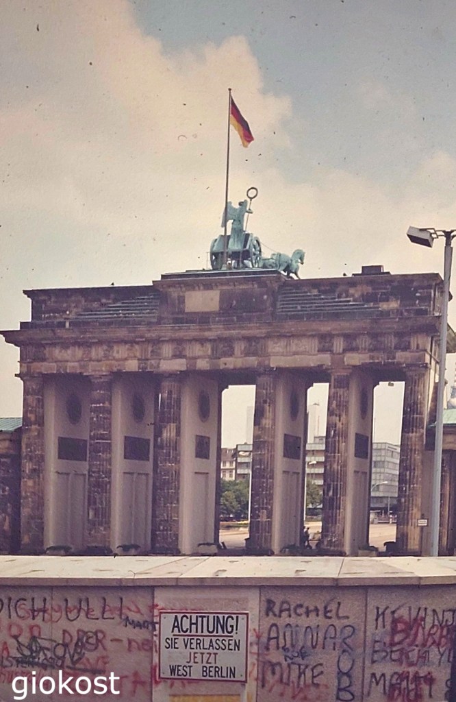 Si boccò la circolazione, si tagliarono strade, ma non solo, intere famiglie furono divise e rimasero in questa condizione per ben ventinove anni. Successivamente il cemento prese il posto del filo spinato, vennero murate le case di confine e si costruirono fortificazioni con l’intento di controllare e non permettere nessun passaggio verso Berlino ovest se non attraversando alcuni punti prestabiliti e solamente da ovest verso est rispettando rigorosissimi controlli. Ricordo l’attesa e il cambio di monete, obbligatorio, a cui si era sottoposti in quel periodo se si voleva transitare a Berlino est per vedere, ad esempio, il Pergamonmuseum e le sue preziose opere come l’altare si Pergamo o la Porta La Porta d’Ishtar, oppure Alexanderplatz per vedere l’orologio universale, l’Urania Weltzeituhr. Inoltre, come non dimenticare i cartelli con la scritta “Achtung Sie verlassen jetzt West Berlin“.