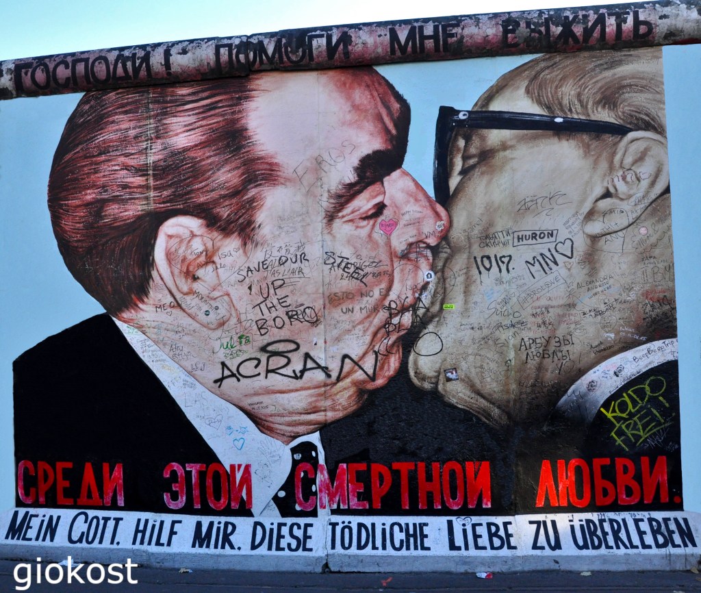 Per chi non ha mai visto il muro ci sono ancora alcuni pezzi rimasti in piedi o meglio dei luoghi che lo ricordano, ad esempio uno di questi è la East Side Gallery, uno spaccato di più di cento murales, lungo più di un chilometro che si trova in Mühlenstrasse, allora Berlino est. Si raggiunge facilmente con la metropolitana scendendo alla stazione di Schlesisches Tor attraversando il fiume Sprea sul ponte Oberbaum poi girando verso sinistra si arriva prima al Museo del muro e proseguendo alla galleria d’arte all’aperto più lunga del mondo, non serve alcun biglietto d’ingresso. Sul sito, solo in lingua tedesca o inglese, si possono approfondire la storia, che inizia nel 1990, avere notizie sugli artisti e sulle loro opere al di fuori di questa esibizione e ovviamente ammirare tutti i murales esposti.