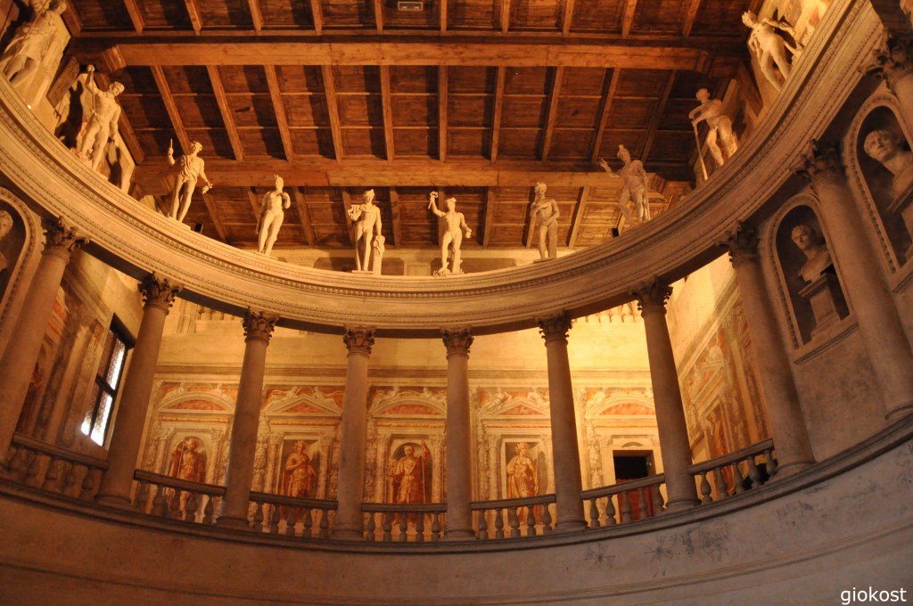 E’ il primo esempio di teatro stabile in quanto costruito a sé stante. Il suo esterno è elegante, ma entrandovi si rimane stupiti dalla gradinata in legno sopra la quale si apre una loggia contornata da statue lignee che raffigurano alcune divinità olimpiche, dietro si notano degli affreschi e degli stucchi che impreziosiscono questa parte del teatro.