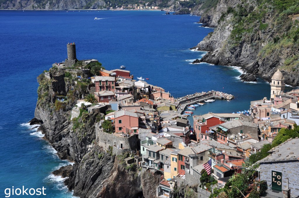 Dall’alto ci si accorge immediatamente della bellezza di questo paese percorso da piccole viuzze tra le case colorate che confluiscono al porto, il centro vitale di questa borgata. Altra caratteristica meraviglia sono i muretti a secco e i terrazzamenti per la coltivazione della vite. Qui le spiagge sono due, la prima in pieno centro accanto alla chiesa di Santa Margherita, la spiaggia di sabbia è molto piccola, ma ci si può distendere anche sugli scogli che la delimitano da cui ci si può tuffare. L’altra è una spiaggia sassosa, spesso battuta dal vento e quindi può essere alquanto difficoltoso entrare in acqua. Si raggiunge attraversando un tunnel che parte dalla via centrale. Da visitare oltre alla chiesa di Santa Margherita di Antiochia, costruita nel milletrecento, con la sua maestosa torre ottagonale con una cupola o forma di ogiva. All’interno l’altare barocco e un crocifisso in legno del millesettecento. Vicino alla stazione dei treni è visitabile la piccola cappella di Santa Marta di Betania soprattutto per la statua della Santa contenuta al suo interno. Quello più appariscente è il Castello dei Doria, che si innalza sullo sperone di roccia che domina il porto, un maniero con colpiti difensivi con una struttura irregolare vista la posizione. L’entrata è a pagamento.