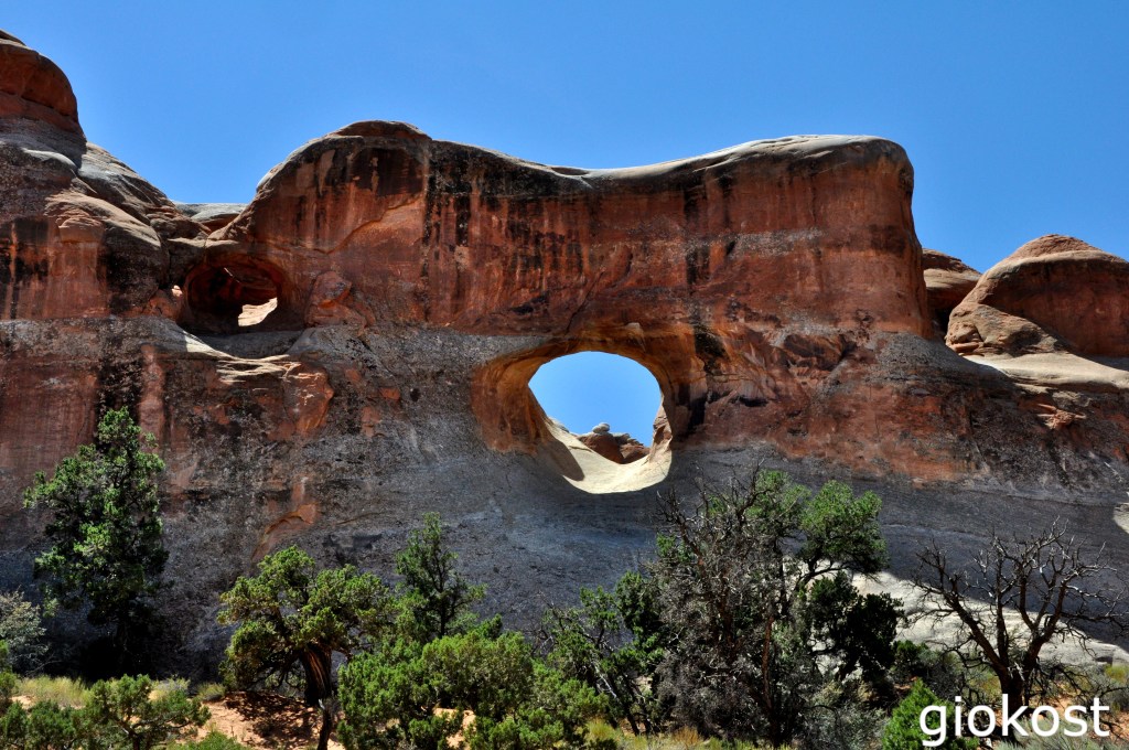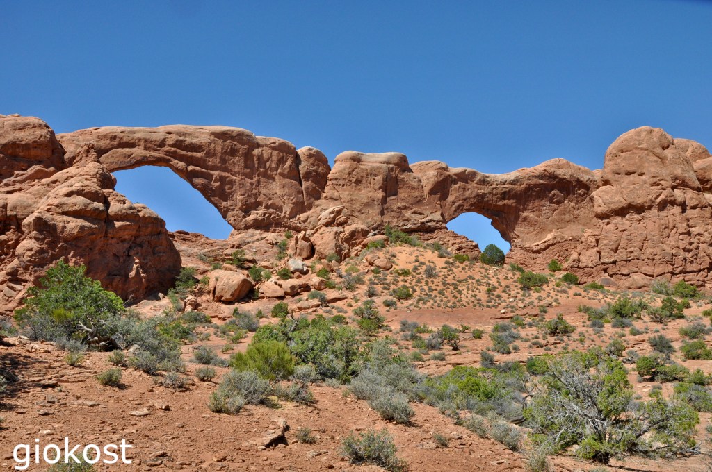 Il primo che si incontra a sinistra è il Double Arch, due archi uno vicino all’altro, una doppia arcata in definitiva, l’insieme è veramente imponente tanto da essere il terzo più grande del parco. La notte qui si incontrano molti fotografi perché lo splendore delle stelle, in giornate limpide e il poco inquinamento luminoso, riempie questo luogo di magia pura.