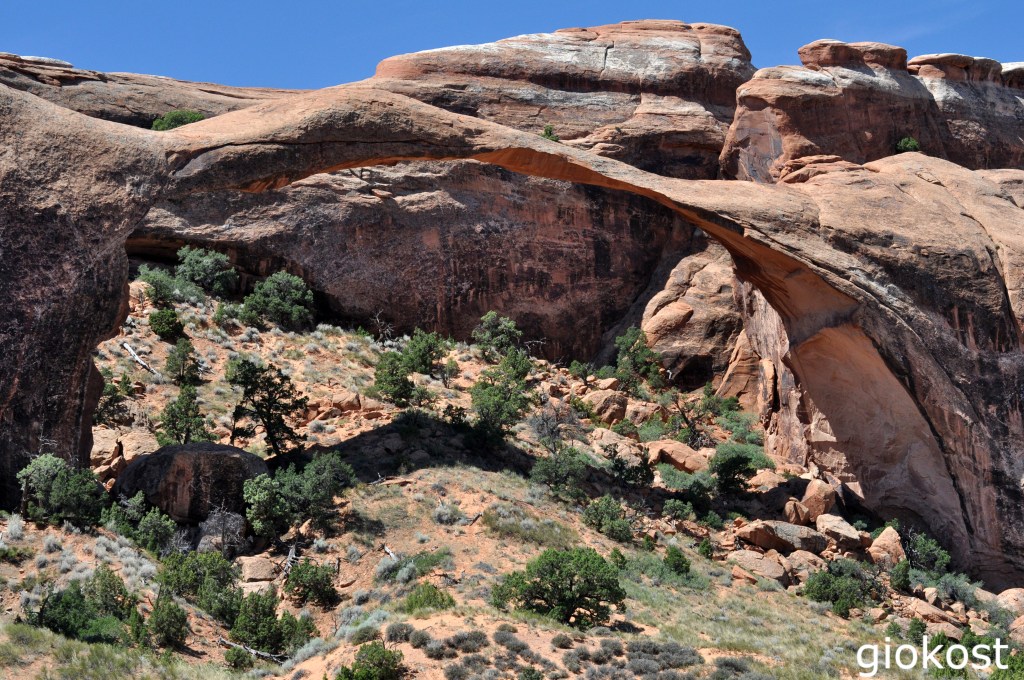 Una nota a parte merita il Landscape Arch, il più lungo di tutto il parco, la sua campata misura quasi cento metri. È vietatissimo passarci sotto data la sua natura molto esile, infatti, questa meraviglia nel 1991 ha subito un cambiamento rilevante della sua struttura oggi lo si apprezza per la sua sottilissima striscia di roccia che è rimasta, in origine era molto più compatta, ora la sua sopravvivenza è davvero appesa ad un filo molto sottile, potrebbe crollare da un momento all’altro.