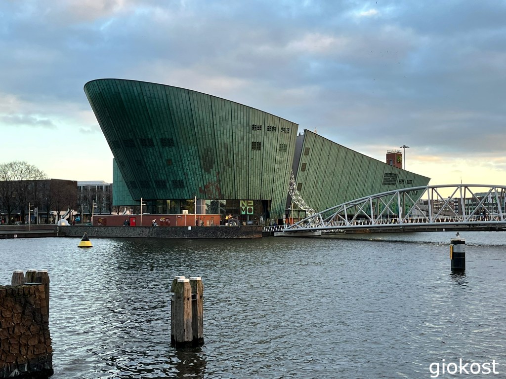 Tornando verso la stazione centrale troviamo Nemo, un museo della scienza, progettato da Renzo Piano, è riconoscibilissimo dalla sua forma e dal suo colore, uno scafo verde intenso. Cinque piani di sono postazioni, sempre molto affollate soprattutto da ragazzini, dove si possono fare esperimenti di chimica, di reazioni a catena, dipingere, imparare sia manipolando materiali che partecipando a workshop. Il tetto di quest’opera è la piazza più elevata di tutta l’Olanda, oltre a potersi rilassare o consumare bevande o cibo durante la visita, consente di vedere la città da una panoramica particolare, si può giocare o rinfrescarsi con l’acqua della cascata che la percorre per tutta la lunghezza della scalinata esterna. Nel sito si possono capire meglio tutte le proposte di questo interessantissimo museo.