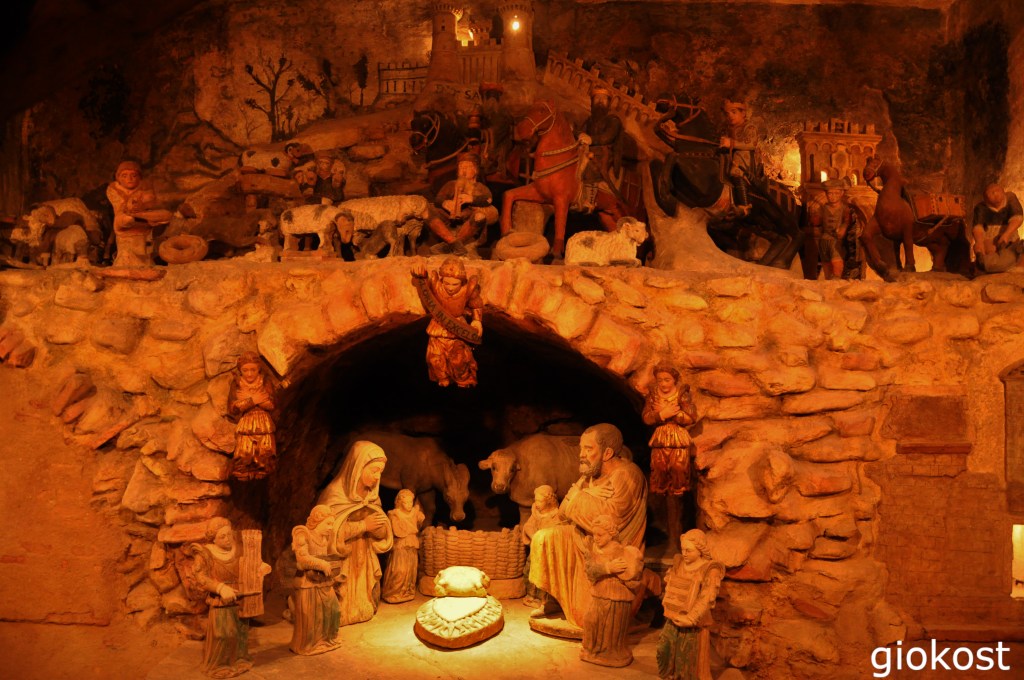 I restauri effettuati secoli dopo le danno uno stile barocco che ancora oggi è dominante sia esteriormente che internamente. Oltre alla fonte battesimale che si trova sulla navata di sinistra e al trittico, si dice di scuola giottesca, c’è la cappella, sotterranea, del VIII secolo, composta da tre stanze dove mi hanno incantato gli affreschi del millecinquecento che raccontano la storia di alcuni santi e il presepe in pietra della stessa epoca.