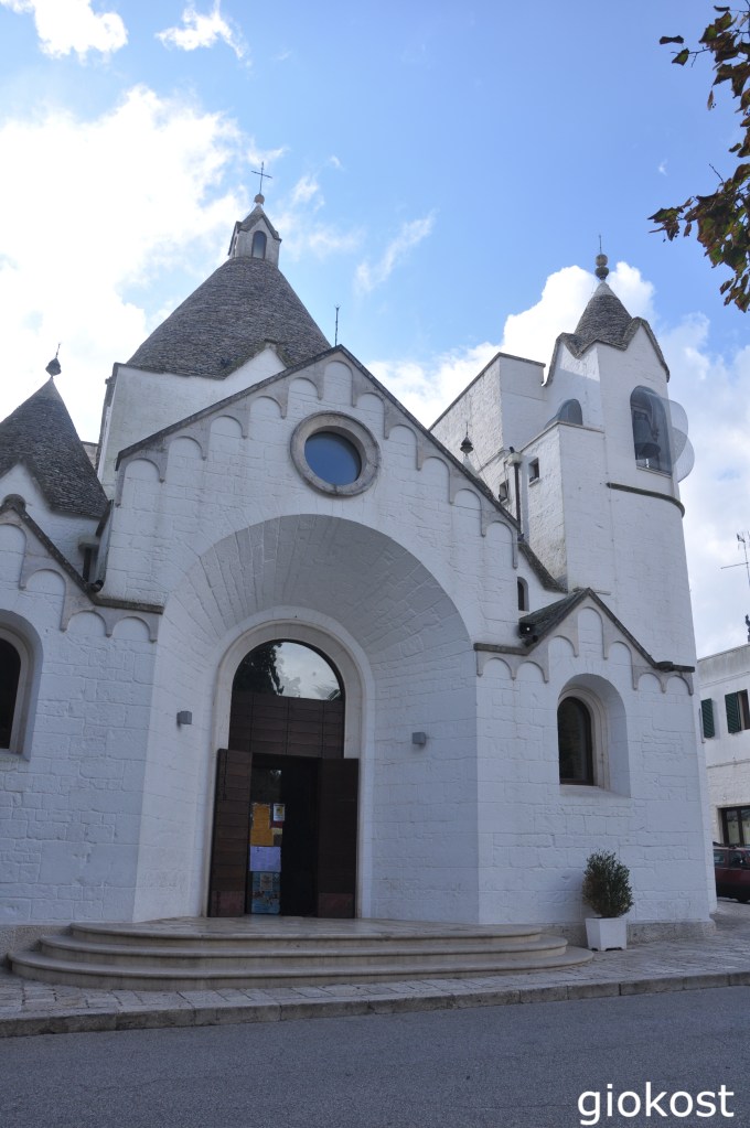 Qui i turisti diminuiscono in modo impressionante tant’è che ho trovato un abitante che mi ha invitato insistentemente ad entrare nel suo trullo per visitarlo. Camminando per pochi metri si arriva di fronte alla Basilica dei Santi Cosma e Damiano risalente alla fine del milleottocento, poco nota e quasi sempre trascurata dai giri turistici si nota anche in lontananza per le due torri campanarie ai lati della facciata che ricorda lo stile neoclassico con le sue colonne ed il frontone sovrastante il portale. Internamente oltre alle statue linee dei due santi e le loro reliquie, si possono apprezzare un dipinto raffigurante la Madonna di Loreto e gli affreschi che compongono l’abside.