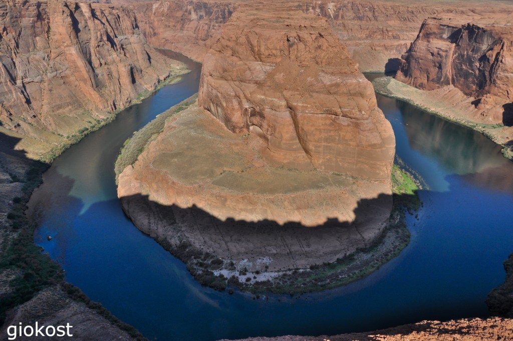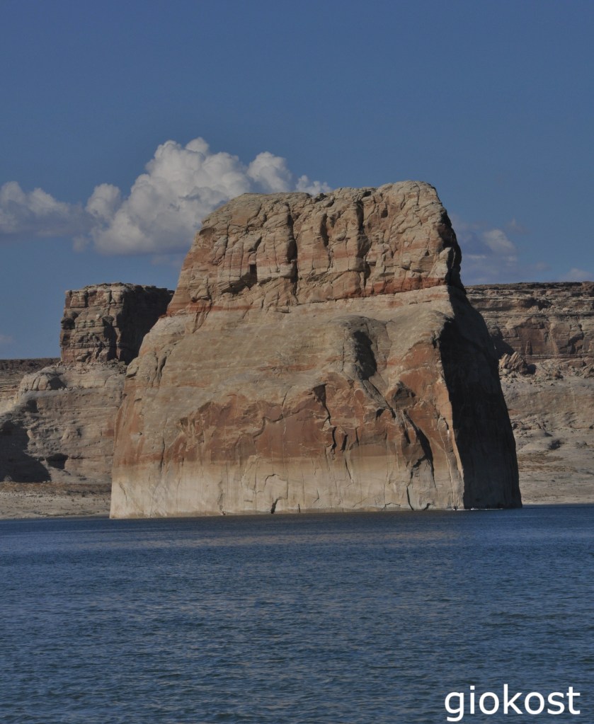 Un lago, e che lago, il secondo per estensione degli Stati Uniti, molto lungo quasi trecento chilometri, è artificiale e si trova tra Arizona e Utah, nella regione del Glen Canyon National Recreation Area. Ero a Page alcuni anni fa, a fine agosto del 2011, dove ho dormito presso un Motel 6, ho imparato rapidamente a prenotare in anticipo per i weekend, gli americani si spostano in molti nei fine settimana e perciò è alquanto difficile trovare da dormire all’ultimo momento, provenivo dal Grand Canyon. Prende il nome dal maggiore John Wesley Powell geologo ed esploratore. Questa bellezza è formata dal Colorado River, sì proprio quello che ha scavato anche quella meraviglia che è il Grand Canyon, il cui decorso è interrotto dalla diga ad arco del Glen Canyon, costruita in dieci anni dal 1956. Entrando al Visitor Center si possono prenotare visite guidate che ti portano nei meandri e nelle cavità di quest’opera ingegneristica e avere altre informazioni, per esempio sulla costruzione o sui dintorni da visitare. Page è una piccola cittadina abitata da poche migliaia di persone che deve la sua importanza soprattutto al turismo, infatti si trova al centro di luoghi incantevoli e quindi è la meta perfetta dove fermarsi per scoprirli.