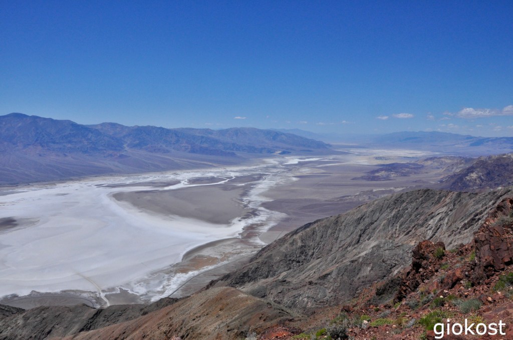 Nel secondo caso la Death Valley. Ci sono arrivato da Las Vegas percorrendo la NV 160 e poi deviando sulla 190 alla Death Valley Junction. Cosa vedere? Ci sono molti luoghi interessanti e curiosi da visitare, dipende dal tempo a disposizione. Alcuni raccontano la storia di questa depressione, altri sono splendide viste e panorami, altri ancora curiosità misteriose. Andiamo in ordine, deviando dalla 190 arriviamo ad un punto panoramico che lascia stupefatti, Dante’s view, un belvedere a quasi millesettecento metri, da cui beneficiare di una vista completa e diretta su Badwater Basin e sulle montagne circostanti.