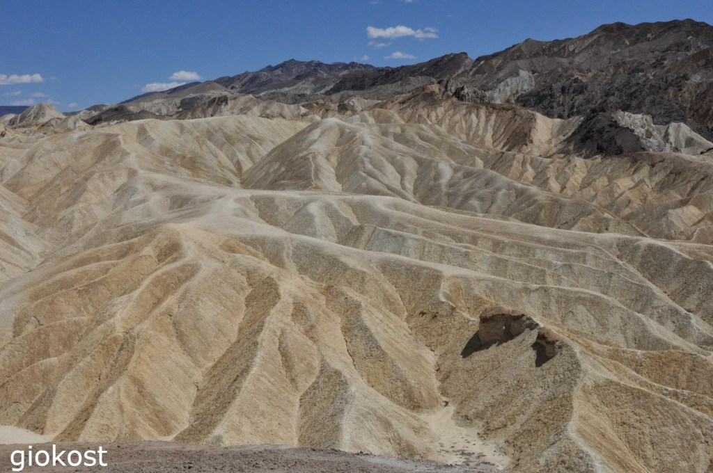 Riprendendo la 190 dopo una ventina di miglia si arriva a Zabriskie Point, raggiungibile facilmente con un sentiero lastricato. Comunemente dette Badlans perché, causa la siccità, qui non cresce nulla, neanche una pianta, sono uno spettacolo di colori che si mischiano tra loro, creando una scenografia cara anche al regista Michelangelo Antonioni che tra questi calanchi ha girato delle scene del suo memorabile film.