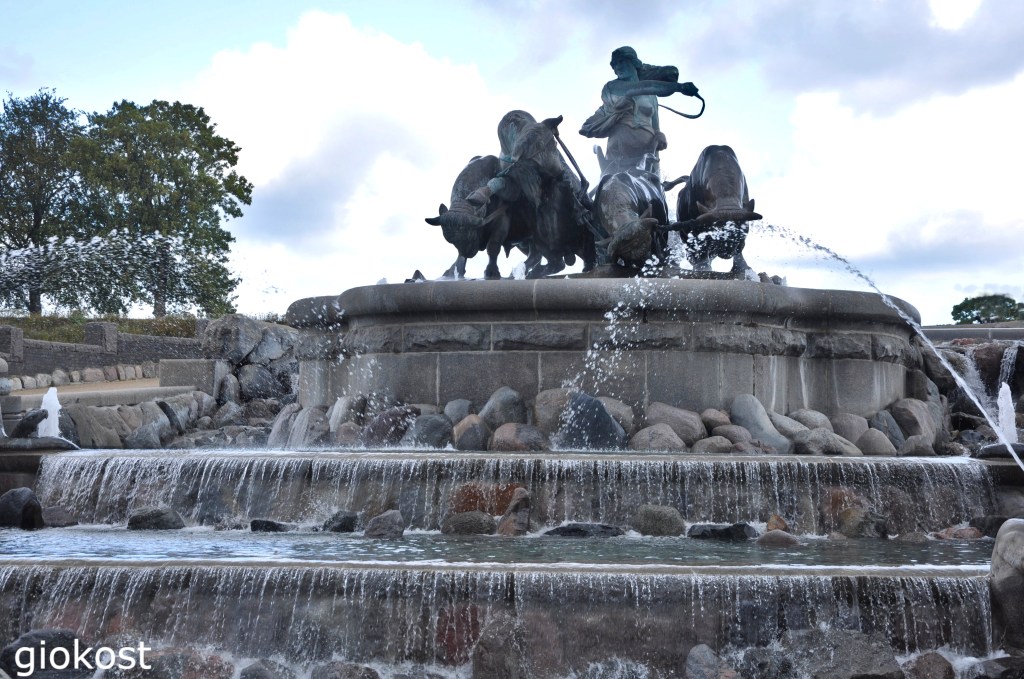 Poco distante, circa un chilometro, costeggiando il mare, proprio all’ingresso del porto di Copenaghen, si arriva in vista della Sirenetta, facilmente riconoscibile dalla quantità di persone che si ammassano per fare foto e selfie. La sua storia si rifà alla fiaba di H.C. Andersen, ma è anche dei vandalismi che ha subito e delle copie che si trovano in giro per il mondo anche in Italia. È una statua in bronzo alta circa un metro e mezzo, e forgiata da E. Erksen, inaugurata nel 1913, anch’essa con la sua leggenda, infatti pare che questa sia solamente una copia e che l’originale sia chissà dove. Non pubblico la fotografia perché c’è ancora il Copyright, ma tanto è talmente nota che la potete reperire su qualsiasi social media. Ritornando indietro, in pochissimi minuti, arriviamo in vista della fontana di Gefion.