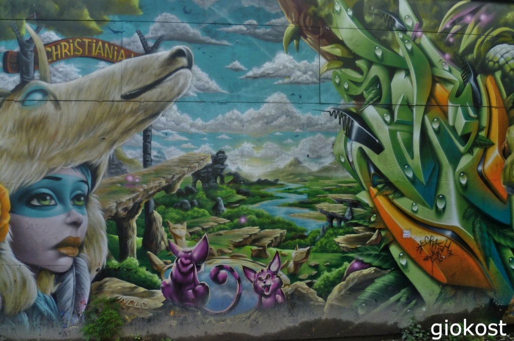 Vicinissimo, tre minuti a piedi, troviamo Cristiania, il quartiere “libero” di Copenaghen, una comunità indipendente, autogovernato, fondata nel 1971 da un gruppo di hippy che occupò una vecchia base navale ormai dismessa. Le traversie di questo agglomerato sono state diverse perché il Governo Danese ha spinto spesso per la sua rimozione. All’interno vivono un migliaio di persone e all’interno fioriscono attività di vario tipo, ma ci sono anche un asilo, una stazione radiofonica, cinema, locali e laboratori tra costruzioni coloratissime.
