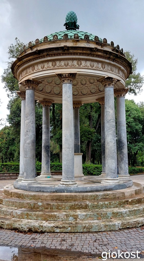Ad un certo punto si ha una scelta: andare diritti verso la Terrazza del Pincio o svoltare a sinistra per vedere la Casina Valadier? La mia curiosità mi ha spinto a deviare. Quest’edificio venne costruito tra il 1813 e il 1817 su indicazioni dell’architetto Valadier in stile neoclassico.