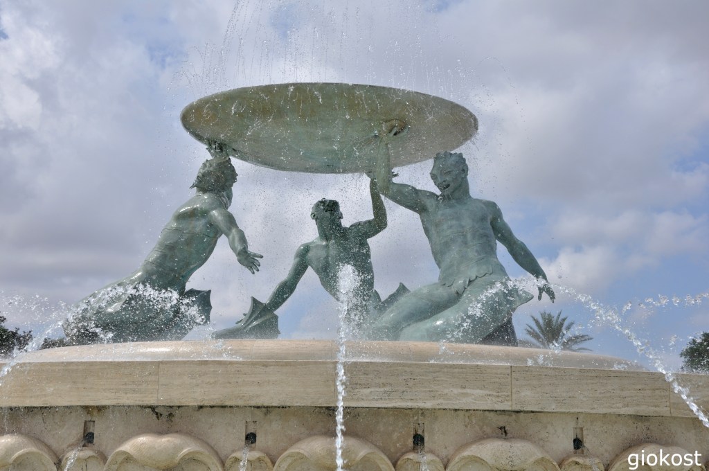 Iniziamo con l’isola più grande, Malta, e dalla sua capitale, La Valletta, Patrimonio dell’Umanità UNESCO dal 1980. Arrivando al bus terminal sulla piazza vediamo la fontana dei Tritoni, iconica in quanto uno sei pochissimi monumenti in stile modernista dell’intero arcipelago, fu progettata nella metà del XX secolo si compone di tre tritoni, uno inginocchiato e due accovacciati sopra delle alghe, aggiunte postume, che reggono una vasca. restaurata più volte, l’ultima nel 2018 come parte del progetto di Renzo Piano voluto per riqualificare l’entrata della città.