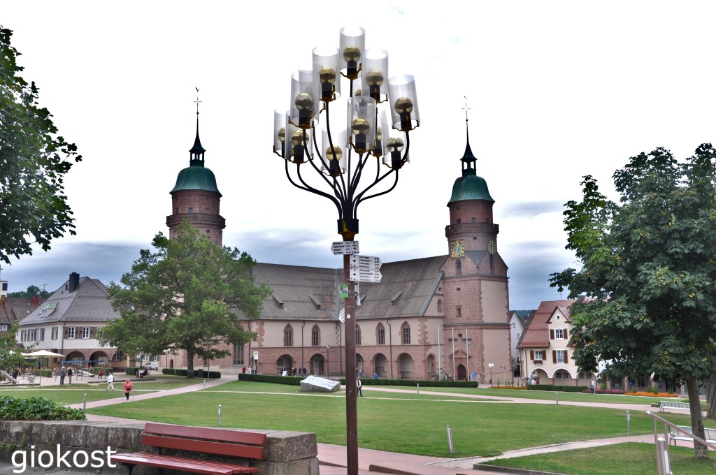 Continuando a percorrere questa iconica strada arriviamo a Freudenstadt, la cui storia non risale ai primi secoli del nostro tempo, ma è comunque interessante, infatti, se ne ha notizia dal XVI secolo quando Federico I del Württemberg decise di costruire una capitale completamente nuova. La città venne rasa al suolo durante la seconda guerra mondiale e ricostruita in pochi anni. Si deve iniziare a visitarla dalla grande Marktpaltz, si dice sia la piazza più grande di tutta la Germania, sicuramente il luogo dove si svolgono tutte le manifestazioni importanti della città, come ad esempio il mercatino di Natale. Su un lato si erge la Stadtkirche, dalla forma particolare, ad angolo retto, con due campanili ai lati, fu costruita nei primissimi anni del milleseicento. L’interno, di una semplicità quasi unica, mette in mostra un crocefisso, tardogotico, delle dimensioni notevoli datato XVI secolo circa, la fonte battesimale, romanica, in arenaria, dal colore rosso vivo, probabilmente scolpita da alcuni monaci lombardi che frequentavano le vicinanze e il leggìo, anche esso romanico, del XII secolo, in legno di tiglio ornato con le figure dei quattro evangelisti, dalla sua posizione si riescono a vedere contemporaneamente le due navate. Sempre in piazza troviamo due particolarità, la prima i portici, sono sparsi anche in altre parti della città, sotto le cui arcate ci sono negozi di ogni tipo, la seconda, più interessante la fontana, dal pavimento lastricato fuoriescono una cinquantina di getti che sono rinfrescanti in estate, giocosi per i bambini e uno sfondo perfetto per le fotografie della piazza.
