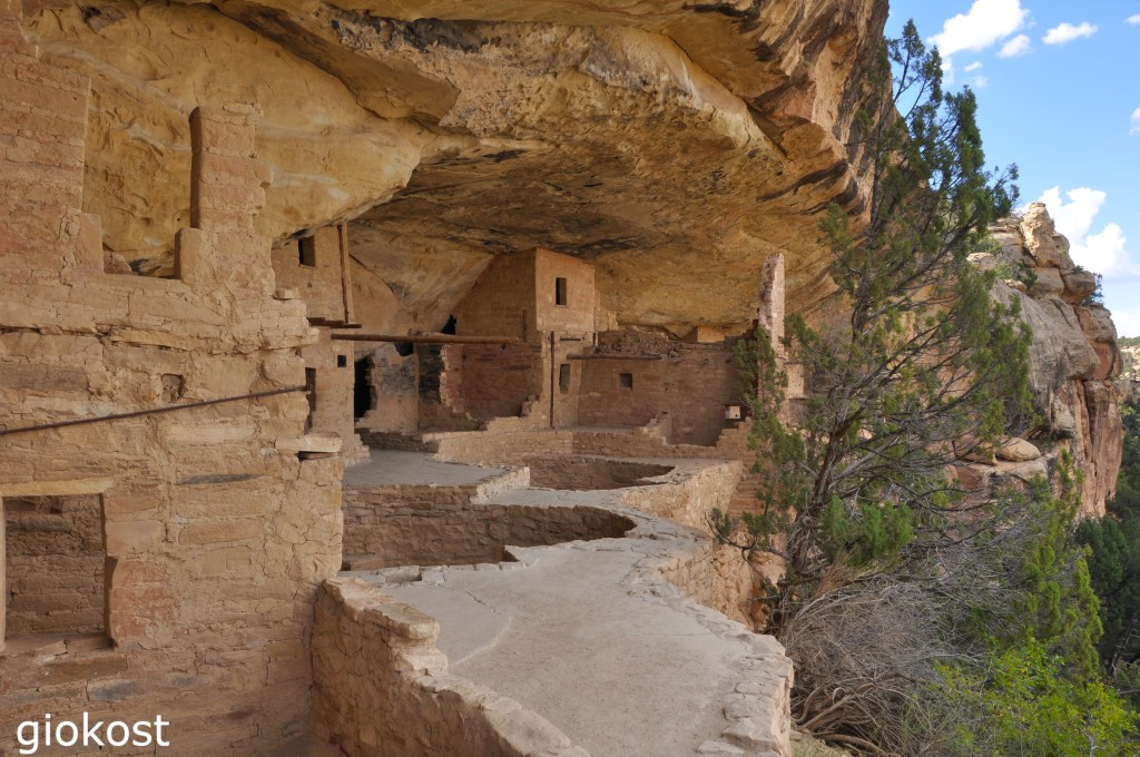 Il primo sito da visitare è la Spruce Tree House, visibile nella foto iniziale, la terza dimora per grandezza costruita dagli antenati del popolo Pueblo. Lunga una sessantina di metri è anche senza dubbio quella meglio conservata, e custodisce più di cento stanze, otto kivas e due torri. Costruita tra il XI secolo e quello seguente, divisa in due sezione fa pensare a più comunità residenti come Cliff Palace. Teoricamente è raggiungibile tramite un breve sentiero lastricato dal Chapin Mesa Museum, non richiede un biglietto o una guida per questo motivo è molto frequentato dai visitatori, per fortuna è facilmente visibile dai punti panoramici dietro al museo.