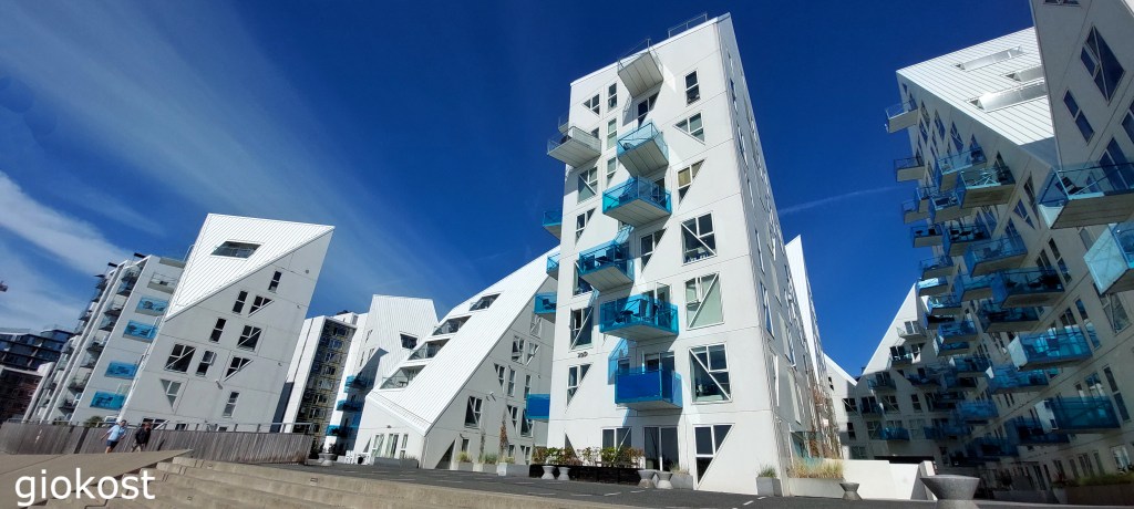 Sul lungomare si è sviluppato un quartiere dal design particolare, con un nome altrettanto esclusivo, Aarhus Ø, significa isola in danese, vi si trovano oltre ad alloggi con discesa a mare, un piccolo porto turistico per imbarcazioni, servizi di ogni tipo, tra cui il frequentatissimo Havnebadet, una piscina sul mare dove nuotare ma anche fare altri sport, ad esempio sci nautico e parchi con giochi sculture e mostre di cui l’esempio più visitato sono un paio di grandi occhiali da sole con lenti di colore rosa chiamati Sea Pink appartenenti alla sculpture By The Sea. Una singolarità di questo quartiere dagli edifici uno diverso dall’altro, è l’Isbjerget, ovvero l’iceberg, un aggregato residenziale vista mare, con facciate bianche, di forma triangolare, appuntite, da cui risaltano balconi di un azzurro abbagliante, tutto assomiglia proprio ad iceberg che si sono frantumati.