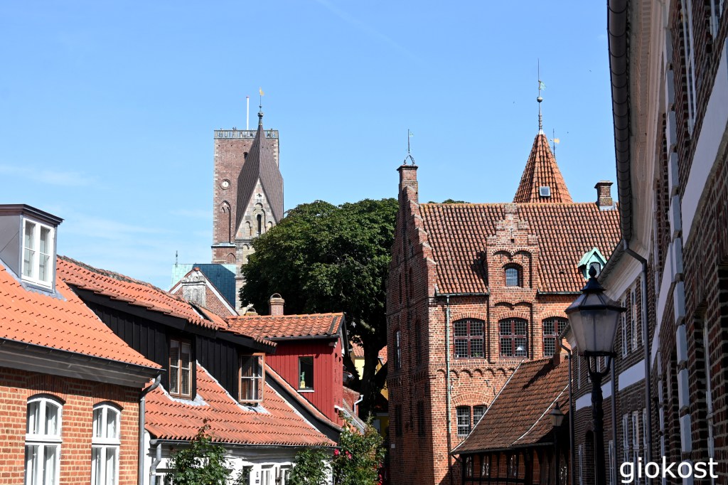 Dalla piazza, girando sulla sinistra e imboccando Skolegade, entriamo nel quartiere storico dalle strette viuzze, l’esempio più interessante è Puggaardsgade su cui si affacciano case a graticcio e palazzi in mattoni rossi come il Taarnborg, rinascimentale che fu la sede del vescovo.