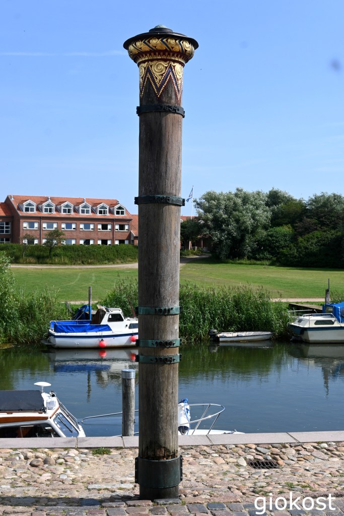 Se invece dalla piazza percorriamo Overdammen arriviamo sul lungofiume Skibbroen il canale che congiunge la città al mare di Wadden e funge da porto sin dall’era vichinga ora solo per imbarcazioni da diporto, qui si trova la colonna Stormflodssøjlen, in legno con anelli in bronzo che indicano l’altezza delle inondazioni subite da Ribe nel corso degli anni e l’estremità che assomiglia ad un copricapo con intarsi dorati.