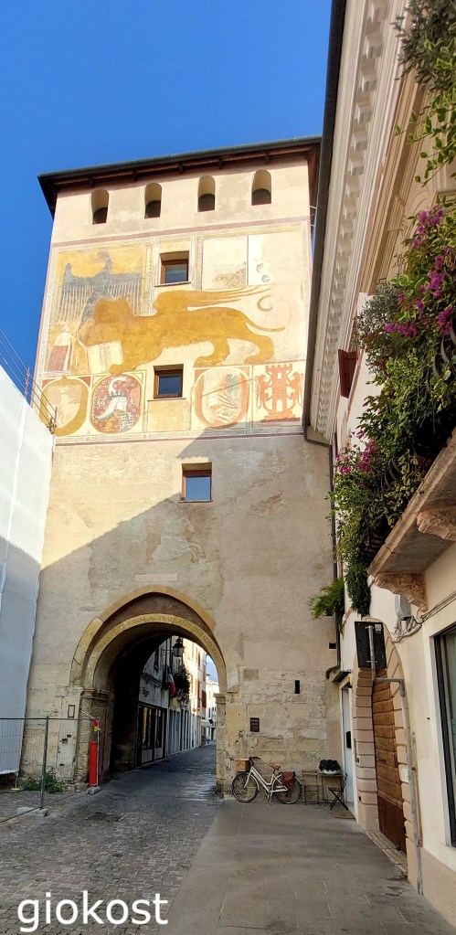 Risalendo verso il centro storico, percorrendo via Beata Giovanna, ad un certo punto ci troveremo di fronte Porta Deida. Costruita attorno alla metà del XVI secolo, come parte del cosiddetto castello inferiore edificato per proteggere le abitazioni fuori le mura. Gli affreschi della facciata nord visibili ancora oggi ritraggono l’aquila imperiale, leggermente sovrapposto il Leone di San Marco con il Doge e subito sotto gli stemmi di alcuni reggenti e tutto a destra quello della città di Bassano. Sulla facciata sud a fatica si riesce a scorgere un cavaliere con cavallo appena sopra il nome della porta.