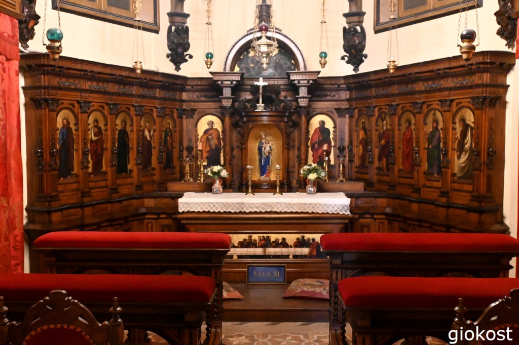 Assomiglia più ad un giardino che ad vero e proprio parco anche perché al suo interno si trovano degli edifici come il Castelletto, eretto contemporaneamente al castello di cui riporta l’ecclettismo, da cui si ha una splendida vista sul golfo, che veniva usato anche come abitazione occasionale da Massimiliano e dalla moglie. Ci sono anche serre, sculture, i resti di una cappella e una casetta detta “casa svizzera”, oggi un punto di ristoro, che si trova ai margini del lago dei cigni. Ma veniamo al castello. Oggi è un museo, e come detto in precedenza sono ventidue le stanze visitabili e tutte conservano gli arredi originali dell’epoca. Il piano terra era la dimora di Massimiliano qui di particolare interesse è la camera da letto allestita come una cabina di una nave, sopra il letto si vede il ritratto della moglie. Adiacente c’è la stanza Novara, lo studio dell’arciduca, una copia del quadrato di poppa della nave “Novara”. Altra stanza interessante è la biblioteca che conserva ancora oggi più di settemila volumi riguardanti diversi argomenti tra cui filosofia, politica, antropologia, strategia militare e botanica, era quindi una biblioteca d’uso. I salottini di Carlotta tra cui la sala della musica, con il forte piano, e il boudoir, la stanza VIII, sono ambienti dove lei amava ritirarsi per suonare e dipingere, da notare il suo ritratto con abito tipico, infine la cappella, maestosa con drappeggi color rosso e l’altare con, sotto la mensa, l’ultima cena e i ritratti degli apostoli sulla parete di fondo.