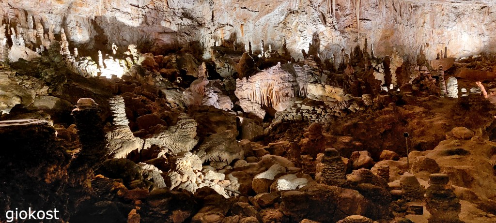 Sulla via del ritorno non si deve mancare di visitare la Grotta gigante, una grotta carsica, caratterizzata da un’ampia sala, la più grande del mondo, dove si possono osservare i processi delle rocce calcaree del Carso, una raccolta di sedimenti su mari poco profondi iniziata milioni di anni fa, queste rocce sono poi emerse dal mare in seguito ai movimenti della crosta terrestre creando delle gallerie che vengono tutt’ora riempite da materiale trasportato dall’acqua che forma le stalattiti e le stalagmiti. Con il percorso si raggiunge una profondità di cento metri e proseguendo, dopo la grande caverna si arriva alla sala dell’altare per poi dirigersi verso l’uscita. La visita è guidata e prima di entrare nella grotta si sosta nel museo speleologico.