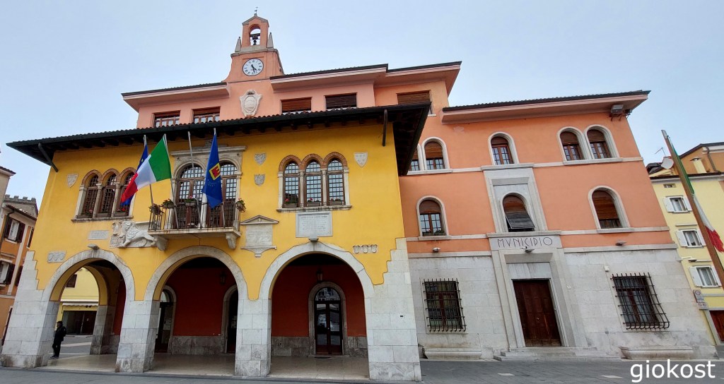 Qui troviamo il municipio, costruito nel XIII secolo, con la torre dell’orologio edificata più recentemente e la facciata con diversi stemmi e tre leoni di San Marco, e il Duomo dello stesso secolo, sulla facciata, bianca, spicca il rosone in stile gotico con al centro un bassorilievo raffigurante la Vergine con il Bambino, sopra il portone d’ingresso vediamo la Santissima Trinità ai cui lati, in ginocchio, ci sono i santi Giovanni e Paolo. Internamente si possono ammirare alcuni resti di affreschi datati milletrecento.