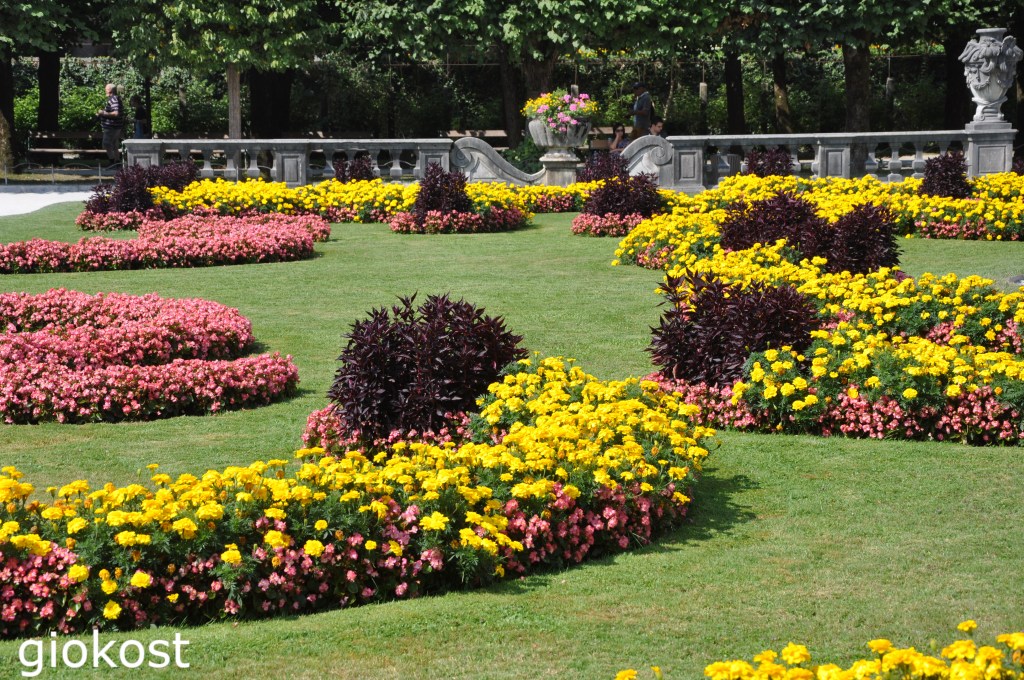 Dalla Marktplatz passando davanti all’università della musica e delle arti drammatiche, il Mozarteum, in pochissimi minuti si arriva al Castello di Mirabell, un palazzo eretto nel XVII secolo dall’ arcivescovo Wolf Dietrich von Raitenau per la sua amante, che dopo vari ampliamenti venne ricostruito prima in stile barocco e poi dopo un pauroso incendio in stile neoclassico pur conservando, per fortuna, due facciate barocche, quella verso il giardino e quella verso il cortile. Internamente lo scalone d’onore, in stile rococò, in granito, con la balaustra ornata da putti e statue. Salendolo si arriva nella sala del marmo con il pavimento in marmo appunto, e le pareti decorate con affreschi in sintonia. Oggi è una sala per matrimoni ed eventi come mostre o concerti. Infine la cappella palatina che presenta, sul soffitto un grande affresco che ritrae San Nepomuceno e l’altare, una ricostruzione del XIX secolo, con state di alcuni santi.