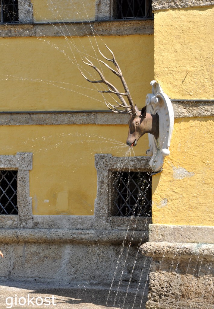 Questa residenza è famosa però soprattutto per gli spettacolari giochi d’acqua, fontane di forme diverse, anche teste di cervi appese alle pareti esterne, sparse nel parco che spruzzano acqua, all’epoca utilizzate come divertimento e scherzo per gli ospiti del castello ma funzionanti ancora oggi. La più famosa è sistemata vicino ad un tavolo con sedie usato per banchettare dove chi si bagnava erano solo i commensali e non il capotavola. Un’ulteriore attrazione è una stretta grotta dove uno spruzzo di acqua solleva una corona, dalle pareti però provengono altri schizzi per cui gli astanti si bagnano. Quello che mi ha maggiormente stupito è il teatro meccanico in miniatura animato dallo scorrere dell’acqua e musicato da un organo idraulico.