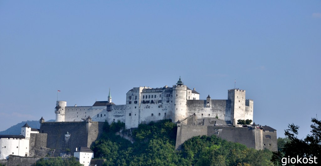 Passeggiando attraverso le vie di questa città sembra di tornare indietro nel tempo. Iniziamo dall’alto cioè dalla fortezza di Hohensalzburg, raggiungibile con una funicolare, ma anche a piedi percorrendo una salita alquanto ripida. La sua costruzione iniziò nell’ anno mille e proseguì, ingrandendosi e trasformandosi da castello medioevale in bastione difensivo, anche se non esercitò mai questa funzione. Dalla sua posizione dominante si ha una affascinante vista sull’intera città e allo stesso tempo è visibile da ogni contrada per cui è diventata il simbolo della città, infatti, non c’è Salisburgo senza l’immagine della sua imponente fortezza.