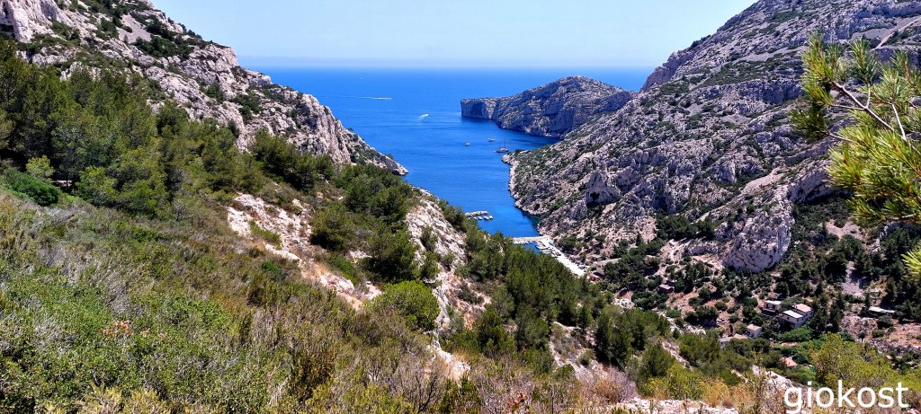 L’insenatura è stretta, profonda , delimitata da un porticciolo molto pittoresco e da alcune case colorate, è abitata da una quarantina di persone. Sulla sinistra, alla fine del sentierino, si trova una piccola spiaggia di ciottoli, sulla destra invece parte un sentiero che porta a al promontorio di Cap Morgiou, da dove si ha una vista incredibile, percorrendolo si passa vicino alla grotta Cosquer. Sulla sinistra del porto una scalinata in pietra, scavata nella roccia ricorda la visita di Luigi XIII venuto in questo piccolissimo paesino, 40 anime, per pescare il tonno.