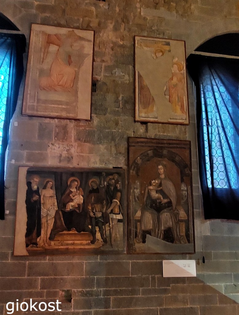 Salendo la scalinata, del millequattrocento, che si vede sulla sua destra si entra, al primo piano, nella Sala delle Capriate, che prende il nome dalla conformazione del tetto, è la sede del Museo dell’Affresco della città dove sono racconti affreschi datati tra il XIV e il XV secolo tra cui l’ultima cena del Bronzino e reperti originariamente di altri edifici nobiliari della città. Questo museo ospita anche mostre ed esposizioni organizzate dal GAMeC, la Galleria d’Arte Moderna e Contemporanea di Bergamo.