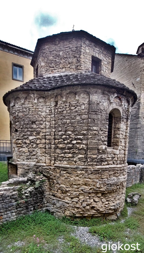 Uscendo da Piazza Duomo passando dietro alla Basilica di Santa Maria Maggiore e girando poi a destra su via Arena vediamo il Tempietto di Santa Croce, una cappella costruita in stile romanico nel XI secolo. Esternamente mostra due parti, una sotto composta da quattro semicerchi, quella superiore di forma ottagonale. Internamente presenta una serie di affreschi riferiti alla vita di Gesù.
