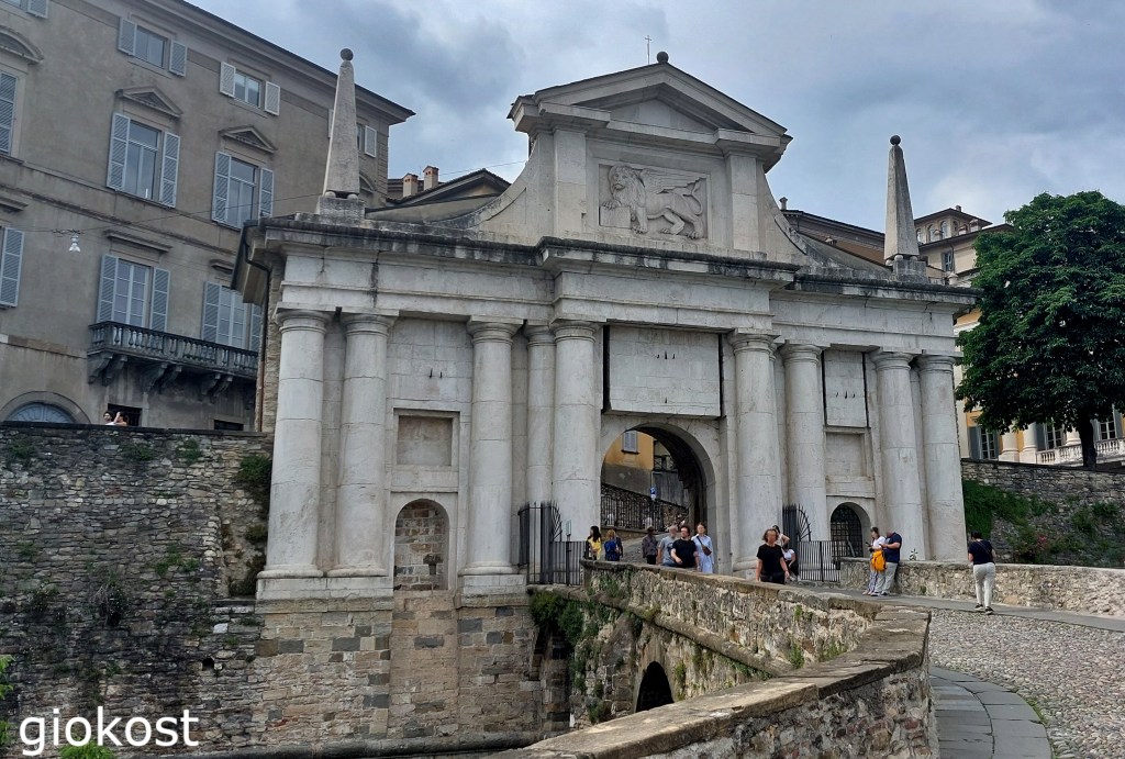 La porta fu costruita alla fine del XVI secolo in marmo bianco delle cave di Zandobbio in sostituzione di una precedente lignea, sul frontone è visibile il Leone alato simbolo della dominazione veneziana, è una delle quattro porte d’ingresso alla città, l’attraversamento è pedonale.