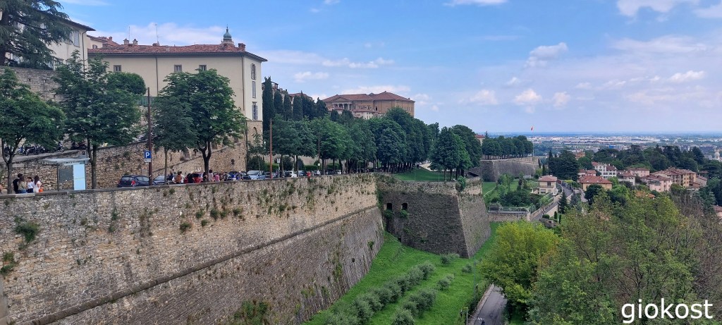 Una nota, si dice che il gelato alla stracciatella sia nato a Bergamo verso la metà del ‘900 quando i proprietari della Marianna, una gelateria che ancora oggi si chiama così e si trova vicino a Porta Sant’Alessandro, creò questo tipo di gelato, una crema bianca con all’interno dei pezzi di cioccolato fondente, che prese il nome del piatto più richiesto del loro ristorante, la stracciatella appunto. La visita si continua partendo da questa porta prendendo la funicolare San Vigilio che porta al colle omonimo dove si vedono le rovine del castello omonimo. Pare eretto già nel VI secolo ha subito poi molte modifiche con ampliamenti e consolidamenti conservando sempre una funzione difensiva. Oggi salendo la scalinata si arriva sulle mura da dove si ha una vista bellissima sulla città di Bergamo.
