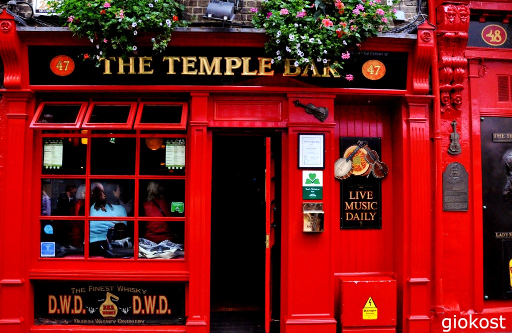 Per finire il giro dobbiamo fare una tappa obbligatoria al Temple Bar, tutti pensano immediatamente al pub più famoso e turistico, ma in realtà Temple Bar è un quartiere di Dublino dove ci sono altri pub, locali di ogni tipo, mostre e artisti di strada. In altri tempi era alquanto pericoloso frequentarlo poi, negli anni novanta, nacque un progetto di riqualificazione che ha trasformato questa zona in un luogo molto frequentato e pieno di vita.