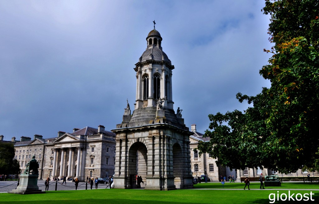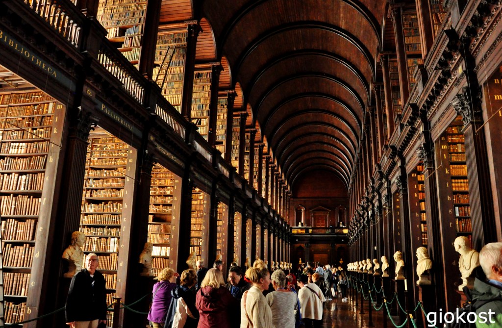 La prima cosa da vedere, a mio parere, è senz’altro il Trinity College, una delle più antiche università d’Irlanda. Istituita dalla regina Elisabetta I nel 1592, all’epoca solamente i protestanti potevano frequentarla, una limitazione che ebbe fine negli ultimi anni del ‘700. Con il passare del tempo la sua fama crebbe sempre più di pari passo con l’aumento delle proprietà, vennero comperati numerosi libri e aumentarono i corsi, oggi è considerata tra le cento migliori università del mondo. Al Trinity College hanno studiato molti personaggi irlandesi di grande fama, scrittori come Oscar Wilde, Jonathan Swift e Samuel Beckett, politici come Mary Robinson divenuta presidente della Repubblica irlandese o il premio Nobel per la pace Mairead Maguire.