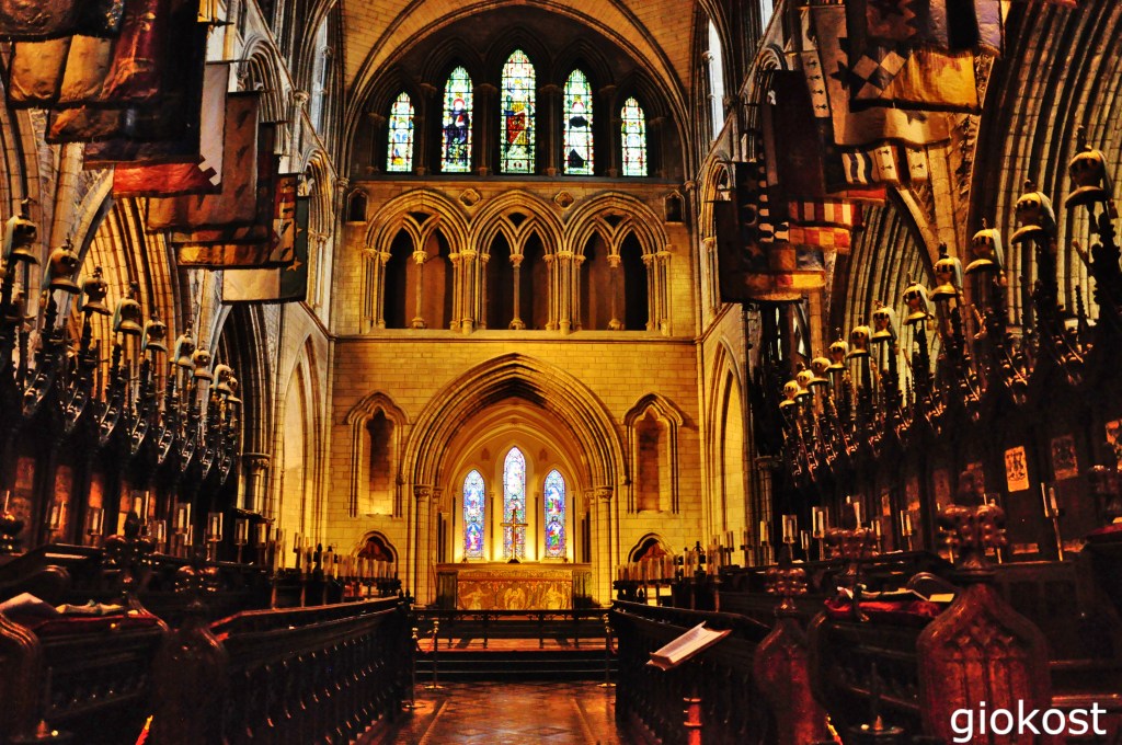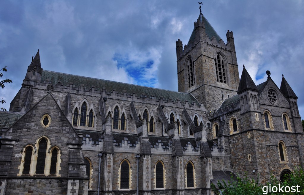 Altri trecento metri e vediamo la Christ Church Cathedral, è la più antica chiesa della città, infatti venne innalzata, in legno, nel XI secolo dai vichinghi, il secolo seguente i normanni la ricostruirono in pietra dopo un incendio e la ampliarono. Questa ristrutturazione durò molti anni, infatti, internamente si possono osservare due stili architettonici diversi, quello gotico della navata e quello romanico del coro. Con il passare del tempo questa meraviglia divenne un rudere tant’è che nel XIX secolo si dovette ricorrere ad un nuovo restauro.