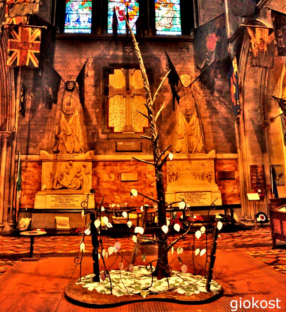 Scendendo verso l’entrata, nel transetto nord c’è una porta in legno con un buco centrale, la cosiddetta Porta della Riconciliazione. La leggenda narra che servì per la pace tra Lord Ormond e Lord Kildare nel 1492, il secondo tese il braccio attraverso il buco rischiando il taglio del braccio da qui il detto “to chance one’s arm”. Lungo la navata ci sono altri busti e tombe ad esempio quella dell’arcivescovo Thomas Jones e di suo figlio o la statua di san Patrizio opera della scultrice irlandese Melanie Le Brocquy.