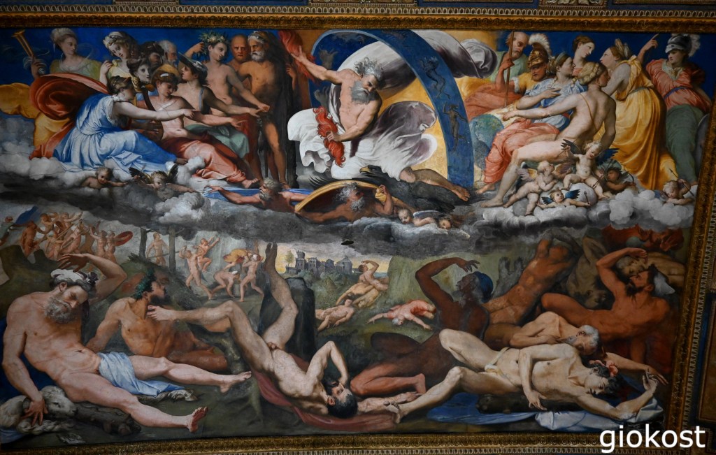 Proseguendo si entra nella Sala di Perseo, rappresentato nelle lunette, le pareti sono caratterizzate da un fine rivestimento di teli di velluto rosso cesellato seicenteschi. La mia attenzione è stata attratta da un quadro del Bronzino che ritrae Andrea Doria nelle vesti di Nettuno, la somiglianza con il David di Michelangelo è straordinaria. Di fronte un altro quadro dove viene raccontato il matrimonio tra Arduino di Narbona e Oria della Volta.