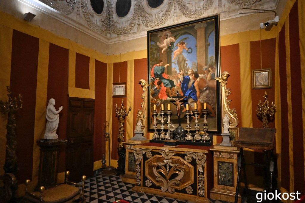 All’interno degli appartamenti del Doge, si trova la Cappella Dogale, l’ambiente più prezioso del Palazzo Ducale di Genova, una dimostrazione del barocco genovese dove meravigliarsi osservando gli affreschi realizzati da Giovanni Battista Carlone che raffigurano, sulla volta dipinta a trompe l’oeil la Vergine Maria in trono con i santi protettori della città e Gesù con un cartiglio che riporta alla trasformazione di Genova da repubblica a regno. Sulla parete di destra è dipinta la presa di Gerusalemme da parte di Guglielmo Embriaco, di fronte la consegna delle ceneri di Giovanni Battista al vescovo, sulla parete di fondo si nota Cristoforo Colombo che pianta la croce su San Salvador, questi eroi genovesi sono un forte richiamo i fasti e al ruolo di vertice di Genova.