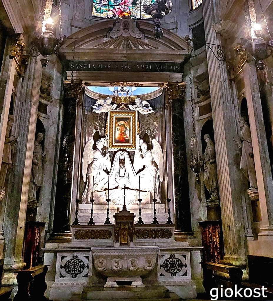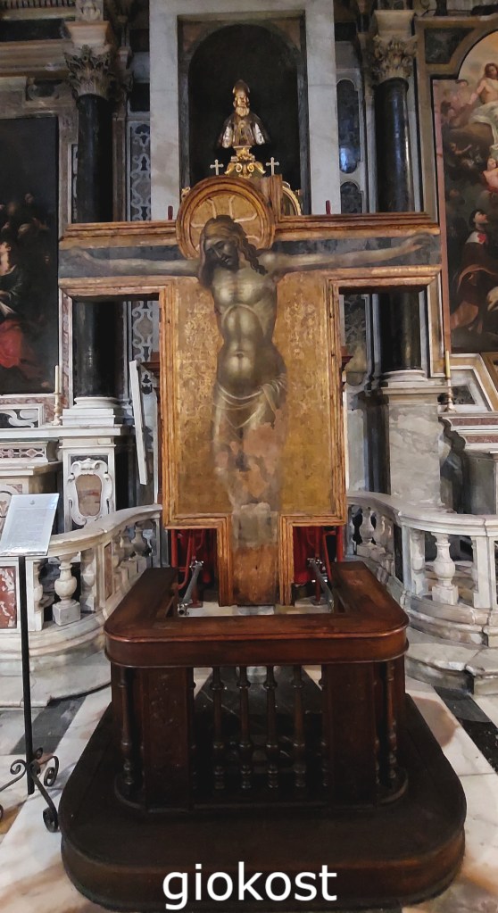 Un’altra meraviglia si ammira lungo la navata di sinistra, è la Croce Maior, datata fine del ‘200, è incompleta infatti mancano sia la base che la parte terminale. Dipinta a tempera su legno di pioppo, presenta una grande areola in rilievo che termina sulle spalle, ai lati del sostegno longitudinale vediamo una raffinata estensione ornata con fiori e foglie all’interno di piccoli cerchi. Fa bella mostra di sé anche il grande organo a canne, per la sua costruzione ci vollero tre anni, venne inaugurato nel 1916, fu uno dei primo a trasmissione elettrica e venne arricchito di una quarta parte visibile nel tamburo della cupola, una decina di anni più tardi, è dotato di quattromila canne.